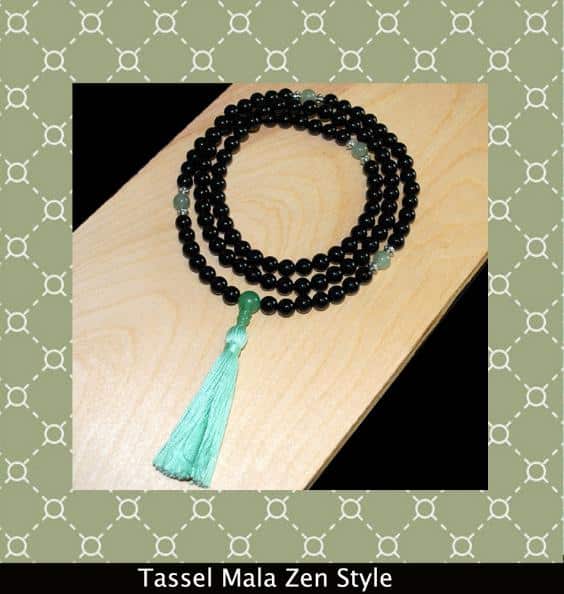This Zen- inspired mala has 108 counting beads, plus markers after the 7th and 21st beads, finished with a parent bead and tassel or adjustable knot.